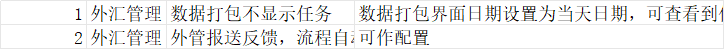 1.外汇管理,问题:数据打包不显示任务;解决方案:数据打包界面日期设置为当天日期,可查看到任务