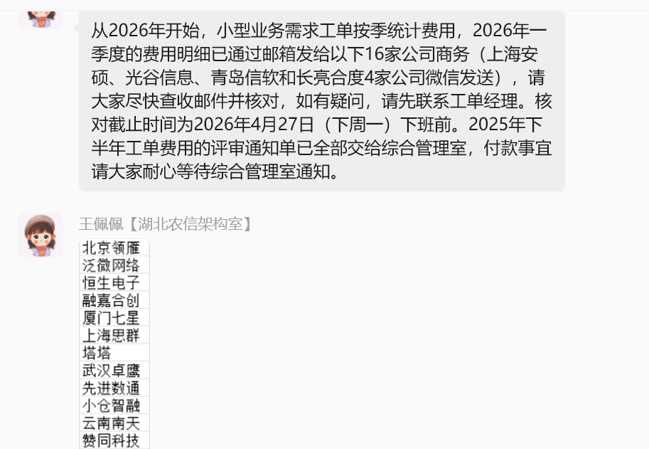 1)260420:截止目前,行内工单未进行签字确认,需要打印后签字确认,并有肖子健提交行内的:综合室