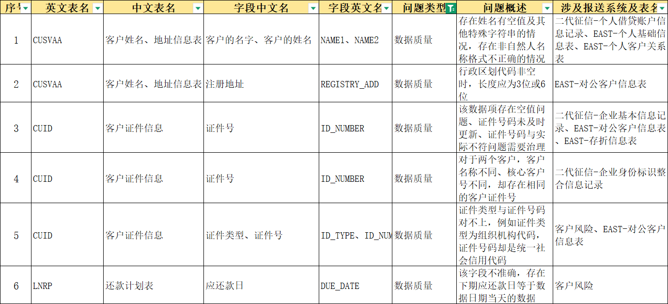 2)提取:根据表中描述的数据质量问题,编写SQL语句提取对应明细数据